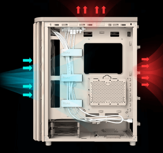 关于寻求特性桌搭的玩家来说,新品ProArt创梦40燕麦白机箱无疑是首选。其推出了玻璃版、MESH版、铁韵版三大版别,均选用一致的燕麦白配色,这一色彩以柔软、天然的视觉感触,轻松符合现代精约桌搭风格,一起经过开放式前格栅的梣木材质装点,不只提升了环保特点,更经过优化气流通道规划,显着进步了机箱的通风功率。散热方面,该机箱搭载奢华电扇装备:定制双160×32mm环形扇叶行进风电扇,合作120×28mm加厚后出风电扇,构成高效的风道循环体系,可快速排出机箱内部热量,保证硬件在高负载运转下仍然保持稳定温度,为玩家供给耐久流通的游戏体会。