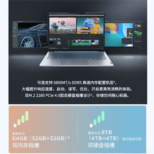 此外,它还配备了16GB LPDDR5x高速内存和512GB PCIe 4.0固态硬盘,运行速度非常快,多开几个程序也毫无压力,使用起来非常流畅。