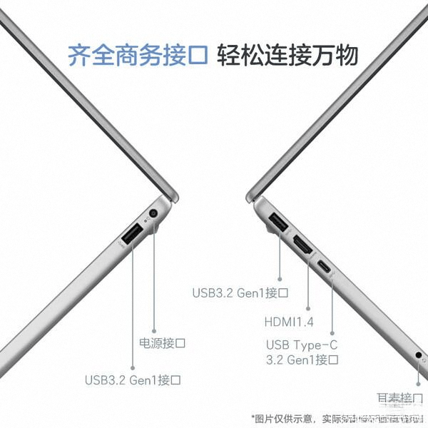 出色的14.1英寸IPS全高清屏幕提供了19201200的高分辨率,色彩饱和度和视角都很不错,能够让你享受到清晰流畅的视觉体验,适合观看视频、进行在线会议或进行图形设计。轻薄的设计,使其厚度仅为14-18mm,方便携带,无论是在学校的课堂、咖啡馆的休闲还是商务差旅中,都能轻松放进背包。HDMI接口和多种USB接口的支持,确保你能随时连接别的设备,满足多种的使用需求。
